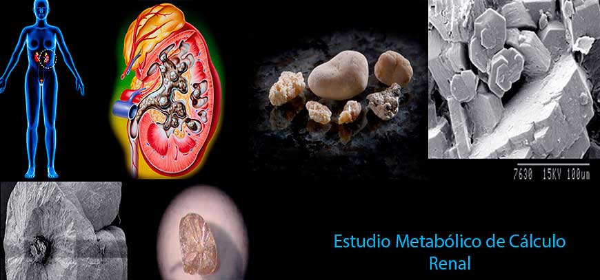 Actualmente en el Perú el diagnóstico del cálculo renal está alrededor del 35%, existiendo un remanente del 65% que se queda sin diagnósticar y por lo tanto el tratamiento es fallido y el cálculo renal es recidivante. Nosotros realizamos la valoración metabólica del cálculo renal con el soporte del Instituto de Investigación en Litiasis Renal y Biomineralización de la Universidad de Palma de Mallorca de España, lo que nos permite el estudio morfológico y estructural del cálculo mediante Microscopia estereoscópica, complementada con Microscopia electrónica de barrido que incorpora espectroscopia de rayos X por energía dispersiva (SEM-EDS) y la espectroscopia infrarroja (IR).